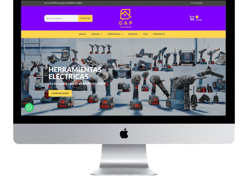 Tienda eCommerce inicial realizada para GAP Insumos, un negocio multirubro que comercializa artículos de hogar y ferretería. Como con todas nuestras tiendas, trabajamos en un diseño personalizado de acuerdo al branding, 100% responsive y con las siguientes características.